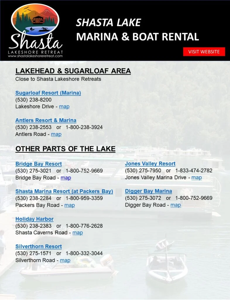 Nestled on the scenic Shasta Lake, Sugarloaf Marina offers a premier boating experience in Northern California. With its convenient location, this marina provides easy waterfront access for boating enthusiasts looking to explore the vast and picturesque landscapes of Shasta Lake. Boaters will appreciate the ample boat slip options available, designed to accommodate vessels of various sizes. Sugarloaf Marina stands out with its comprehensive amenities including secure boat storage and a well-maintained fuel dock for all fueling needs. The marina fosters a welcoming community atmosphere, making it a perfect hub for both seasoned sailors and weekend boaters looking to enjoy the natural beauty of the region. Discover the perfect balance of convenience and charm at Sugarloaf Marina.