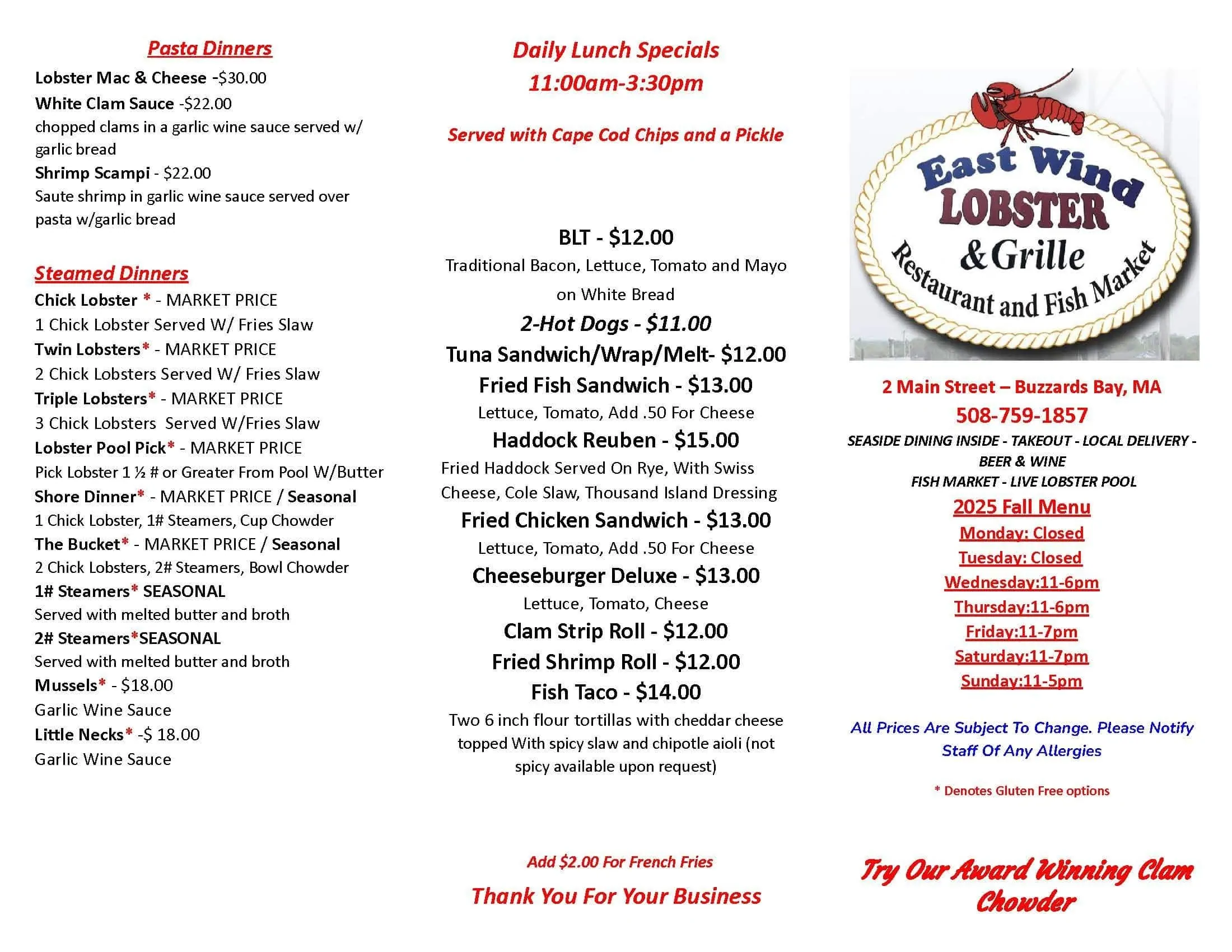 East Wind Lobster and Grille, located in the picturesque town of Buzzards Bay, offers more than just delectable seafood. This marina provides convenient docking and storage solutions for boaters exploring the Cape Cod region. With its prime waterfront access, it’s an ideal spot for both short-term and long-term boat slips. Offering a well-maintained fuel dock and comprehensive storage options, East Wind Lobster and Grille ensures your boating needs are met efficiently. The marina’s community-focused atmosphere is enhanced by its on-site restaurant, where boaters can relax after a day on the water. The location’s unique charm is matched by its practical services, making it a preferred choice for those seeking reliable dockage near Buzzards Bay. Whether you’re stopping in for the renowned lobster rolls or need a trustworthy marina, East Wind Lobster and Grille combines convenience with coastal charm, serving as a hub for maritime enthusiasts.